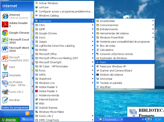 Para abrir Paint, haga clic en el botón Inicio, en Todos los programas, en Accesorios y, finalmente, en Paint.